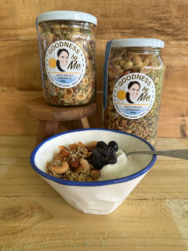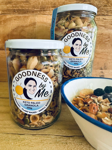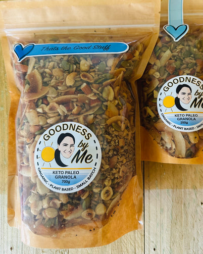 A gorgeous blend of organic nuts, seeds and coconut flakes baked slowly with coconut oil, Vanilla, Cinnamon and Nutmeg.