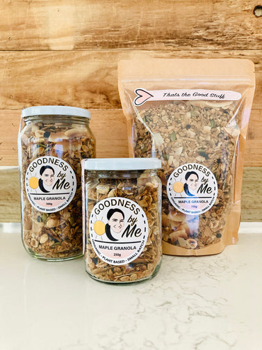 I have worked very hard to source the best ingredients and it is filled with all my favourite nuts and seeds added to Organic Australian Oats. Long slow baked to lock in the gorgeousness of the purest Canadian Maple and orange juice with a touch of coconut oil, vanilla and cinnamon. YUM!