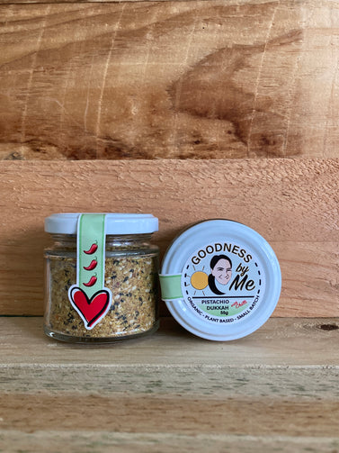 Hand made in a Mortar and Pestle both the Hazelnut and Pistachio Dukkah's ingredients are carefully roasted to bring out the very best flavours and aromas and then pounded with care and attention.