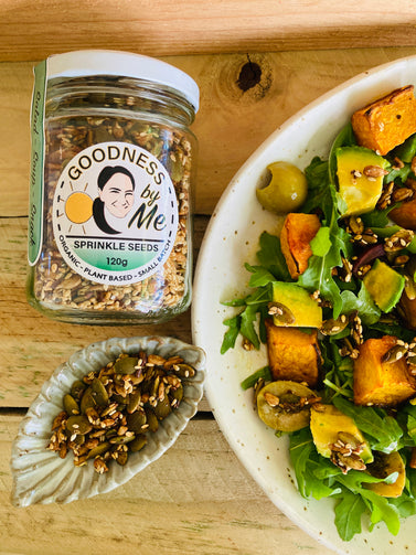 A delicious mix of seeds and spices to dress up and add a tasty crunch to your salad or soup. I have also been known to sprinkle these on my Avo on Toast and they are a great snack straight from the Jar!